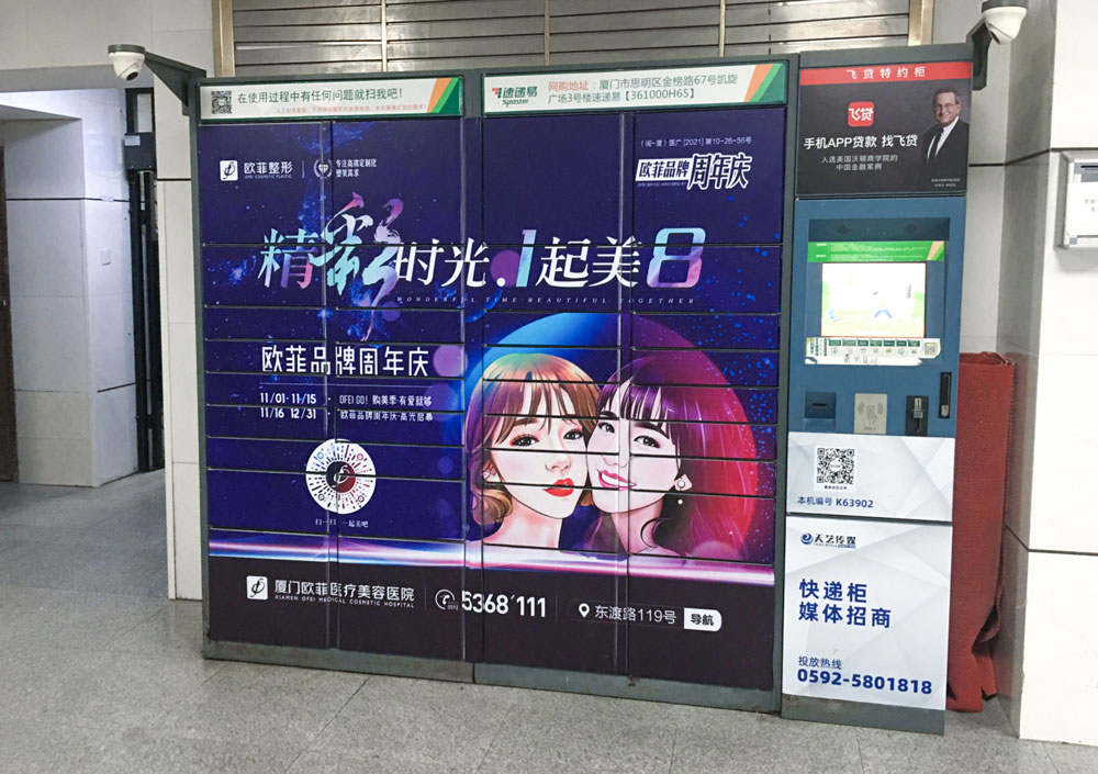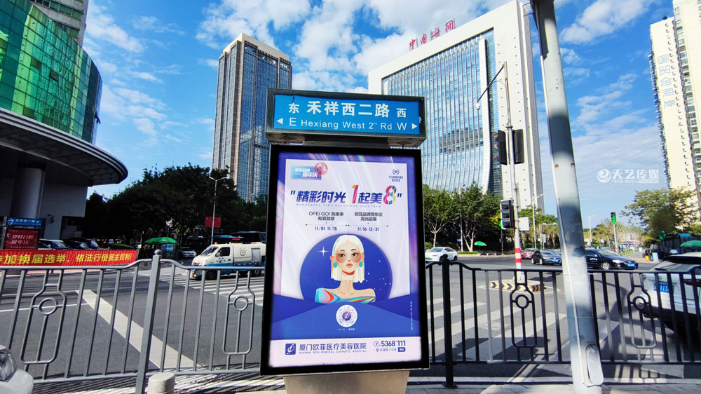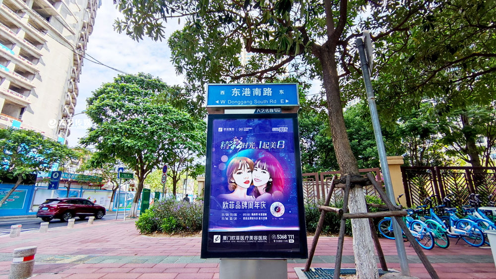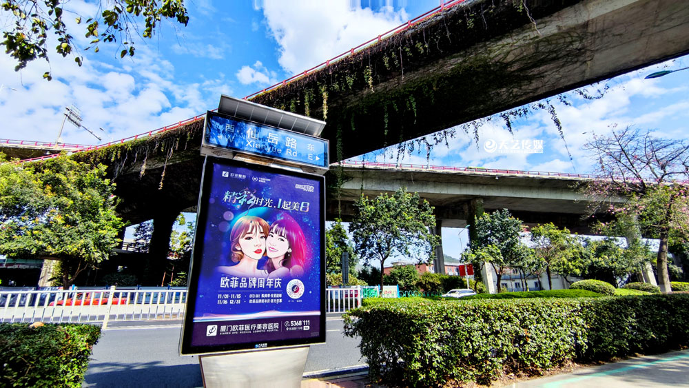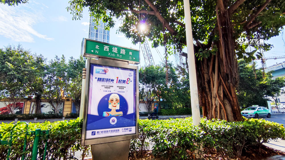 值此歐菲品牌周年慶之際,歐菲品牌在廈門島內(nèi)各個黃金路段(仙岳路、嘉禾路、湖濱南路、鷺江道、環(huán)島干道、東渡路等)投放超過400座城市路名牌和200座社區(qū)快遞柜媒體(集中在中高端人群住宅區(qū)、居住率較為密集的生活居住區(qū))。
